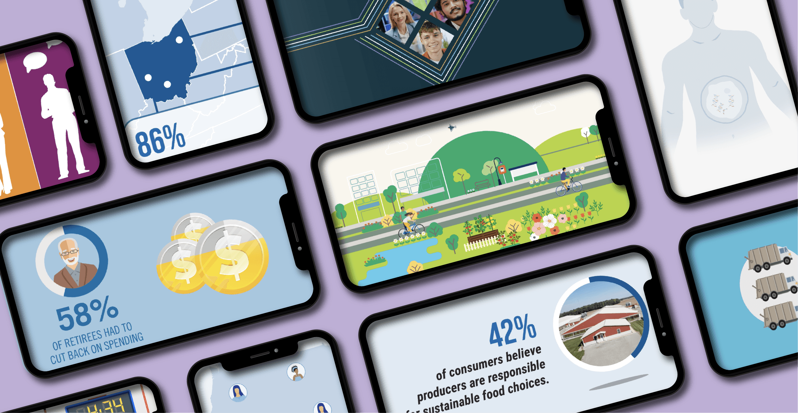 By blending animation and video, we create data-driven content that captures attention, simplifies complexity, and leaves a lasting impression. Our video options are ideal for for non-research audiences and executive teams who quickly need to synthesize the major points of a research project.
