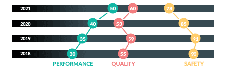 Want the historical trends to take center stage? Stack your data points vertically by year and connect like attributes to show the shift.
